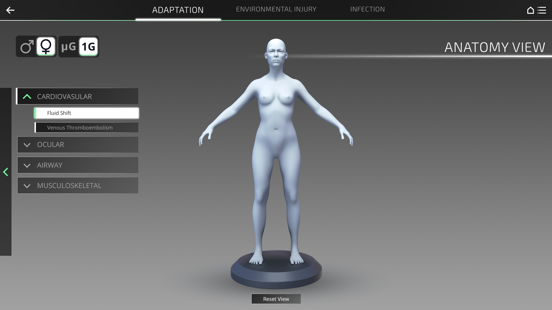 Before going to space, astronauts are only given 2 weeks of medical training. This is an issue due to how the levels of gravity in space affect human health. Project V.H.S. is a virtual simulation desktop application created with NASA to educate future astronauts on how human anatomy and medical procedures will differ in space versus on Earth.